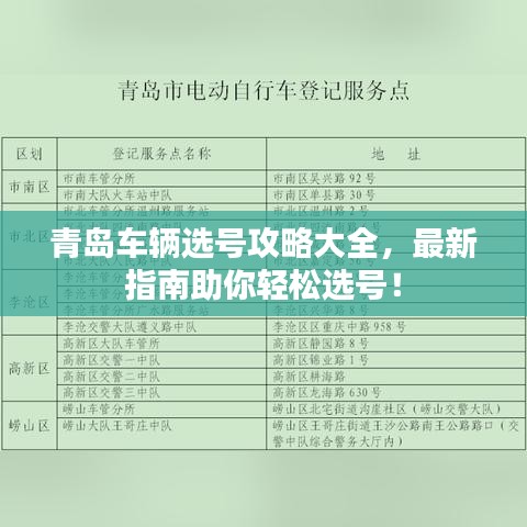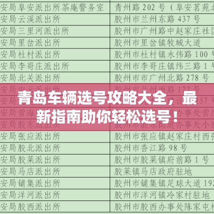 随着青岛市汽车保有量的不断增加,车辆选号成为新车车主关注的焦点,本文将为您提供最新的青岛车辆选号攻略,帮助您顺利选取心仪的车牌号。