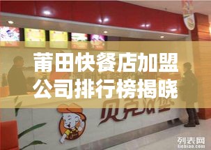 随着餐饮市场的繁荣,快餐行业在中国的发展势头尤为强劲,莆田作为福建省的一个重要城市,其快餐市场也备受关注,本文将为您介绍莆田快餐店加盟公司的排名,帮助您了解哪些品牌在市场上更具竞争力,更具发展潜力。