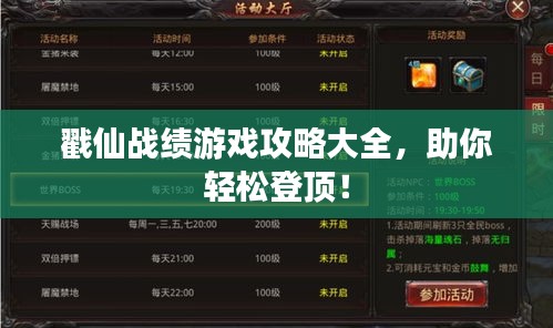 在《戳仙战绩》中,战斗策略是取得胜利的关键,玩家需要掌握合适的战斗节奏,利用角色的技能和装备的优势,击败敌人,最新的攻略中,介绍了一些高效的战斗策略,如控制敌人、躲避技能等。