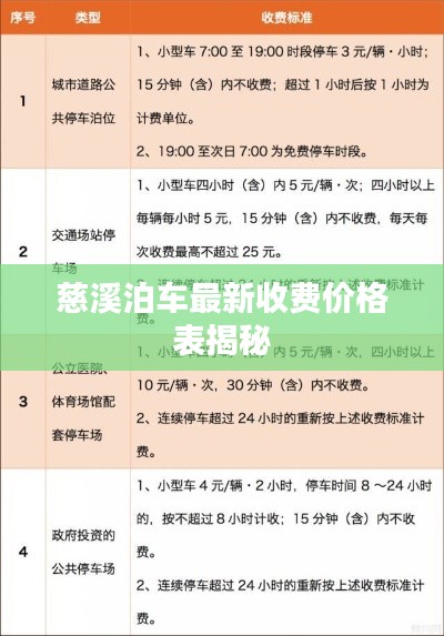 随着城市化进程的加快,停车问题已成为各城市普遍面临的问题之一,慈溪市作为一个经济发达的地区,其停车问题也备受关注,为了更好地管理泊车市场,慈溪市制定了一系列泊车收费标准,本文将详细介绍慈溪泊车收费价格表最新的相关信息。