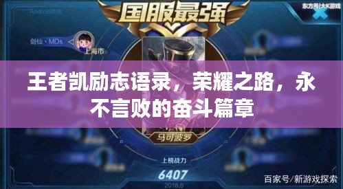 每个人都有自己的荣耀之路,这条路或许充满荆棘,或许坎坷不平,正如王者凯所说,只有勇往直前,不畏艰难,才能在这条路上越走越远,最终夺取属于自己的荣耀。