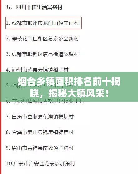 烟台,这座美丽的海滨城市,以其得天独厚的地理位置和丰富的资源吸引着无数人的目光,我们将聚焦于烟台的乡镇面积,为您揭晓烟台乡镇面积排名前十名。