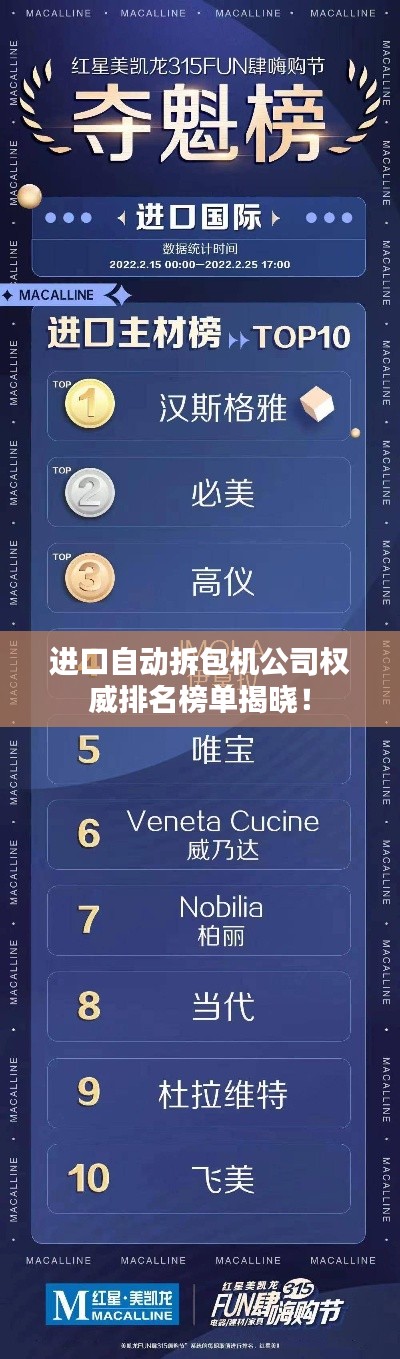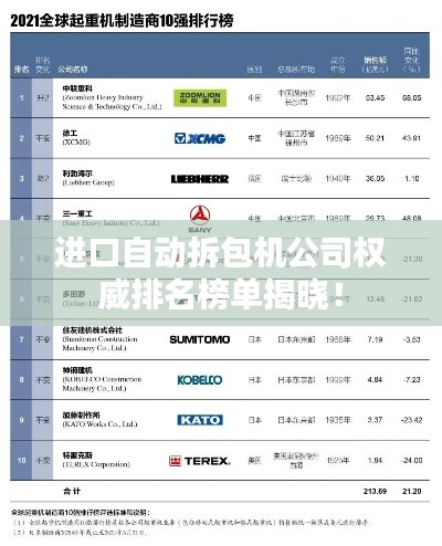 随着全球物流行业的快速发展,自动拆包机已成为各大企业不可或缺的设备之一,在众多进口自动拆包机公司中,哪些公司排名靠前,备受行业关注呢?本文将为您揭晓进口自动拆包机公司的排名情况。
