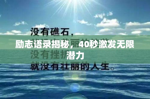 在繁忙的生活中,我们时常需要一些简短而富有力量的话语来激励自己,在这40秒里,让我们一起分享一些学习励志语录,激发你的无限潜能。
