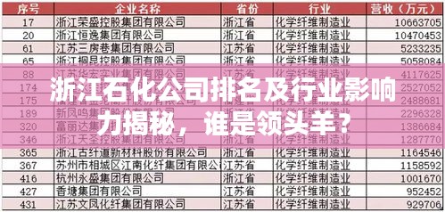 随着全球经济的蓬勃发展,石化行业在中国经济中占据了举足轻重的地位,浙江省作为中国石化产业的重要基地之一,拥有众多的石化公司,这些公司在国内外市场上均展现出了强大的竞争力,本文将探讨浙江石化公司的排名及其行业影响力。