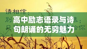 在这个充满希望的时代,让我们共同努力,让高中励志语录中的诗句朗诵成为我们青春岁月中最美好的回忆,为我们的人生道路注入无尽的力量与智慧。