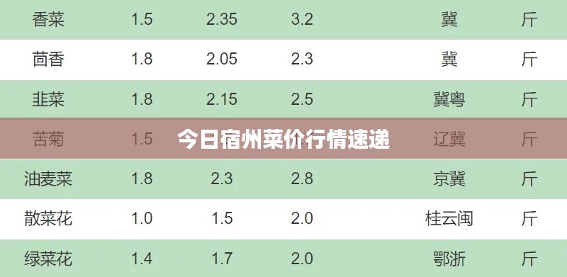 随着季节的变化和市场的需求波动,宿州市的菜价也在不断变化,本文将为读者介绍今日宿州最新菜价的情况。