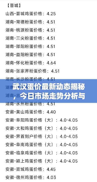 随着生活水平的提高,蛋类作为日常必备食品,其价格动态一直备受关注,本文将重点关注武汉地区今日蛋价的最新情况,同时结合市场因素进行分析与预测。