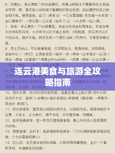 连云港是一座美丽的海滨城市,拥有丰富的自然景观和美食文化,通过本文的连云港美食攻略与旅游攻略,相信你已经对这座城市有了更深的了解,希望你能在连云港的旅行中,尽情享受美食和旅行的乐趣。