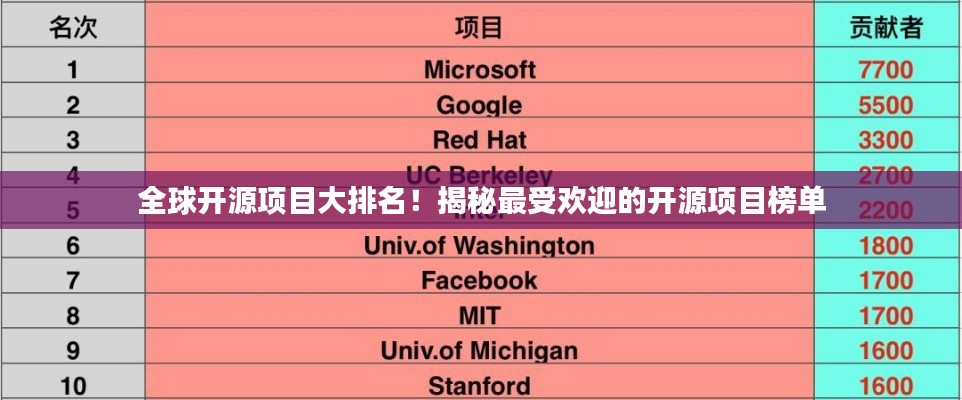 世界开源项目排名中的这些项目,都在全球范围内产生了深远影响,这些项目的开源性质,使得全球开发者能够共享技术成果,共同推动软件产业的进步,随着技术的不断发展,这些开源项目将继续发挥重要作用,为全球的软件产业注入更多活力。