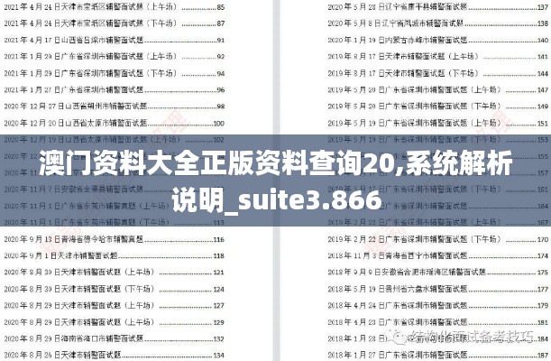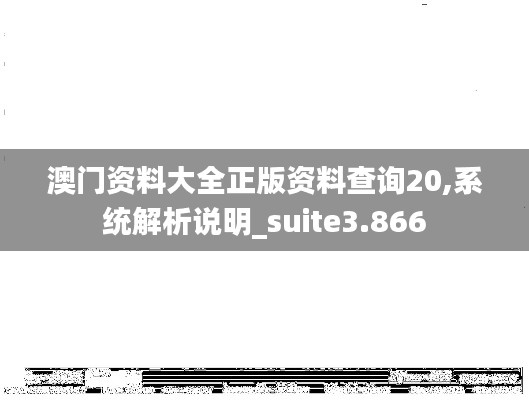 澳门特区作为中国特别行政区的之一,一直都有着独特的行政体系和政策。随着历史的不断发展,澳门在政府信息公开与政策文件方面也逐渐采取了更透明、更便捷的措施。面对即将发布的“澳门资料大全正版资料查询20”系统,我们在此详细介绍解析说明_suite3.866,旨在提供便利的查询和理解通道,让澳门同胞们根据各自需要更加深入地了解特区政策和历史数据。
