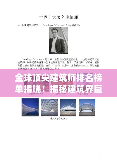 建筑是城市发展的见证,也是人类文明进步的标志,建筑师作为这一伟大事业的主体,其影响力日益扩大,以下是世界上最多的建筑师排名,他们以其卓越的设计才华和丰富的实践经验,赢得了世界的瞩目。
