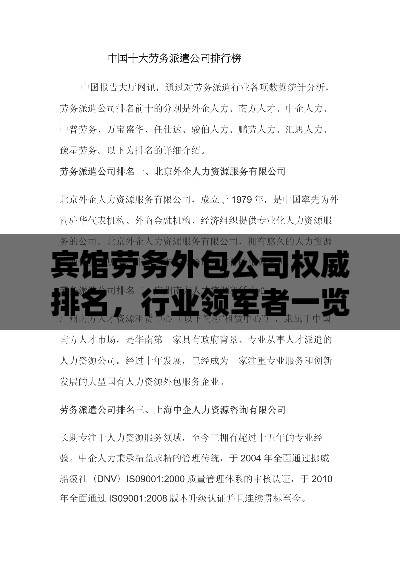 随着旅游业的蓬勃发展,宾馆业务需求不断增长,劳务外包服务在宾馆行业也逐渐成为了一种趋势,本文将探讨当前市场上的宾馆劳务外包公司排名,介绍行业内的一些佼佼者,为需求方提供参考。