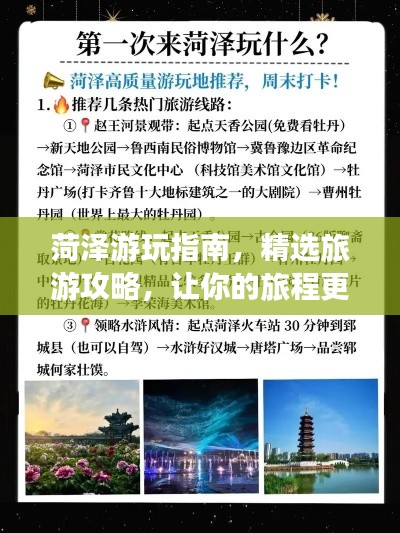 菏泽这座历史悠久的城市,以其丰富的文化遗产、美丽的自然风光和地道的美食吸引着无数游客,通过本篇文章,希望您能更好地了解菏泽的旅游资源,为您的菏泽之行提供有益的参考,无论您是热爱历史文化,还是钟情自然风光,或是品尝美食,菏泽都能满足您的需求,您定能收获一次难忘的旅行体验。