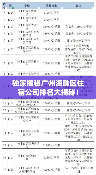 根据以上分析,我们可以对海珠区的住宿公司进行初步的综合排名,具体的排名可能会因时间、季节、市场需求等因素而有所变化,旅客在选择时,还需结合自身的需求和实际情况进行考虑。