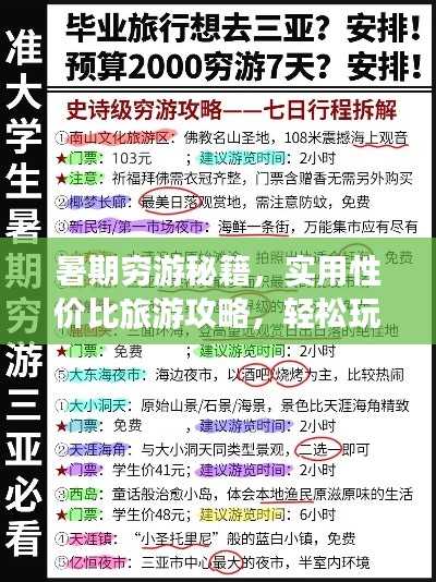 通过提前规划、选择合适的目的地和住宿、经济出行、关注优惠活动等方式,可以在暑期旅行中节省不少费用,注意防晒防暑、安全出行等事项,确保旅游过程的顺利进行,希望这份暑期性价比旅游攻略能够帮助你度过一个愉快而经济的暑期旅行!