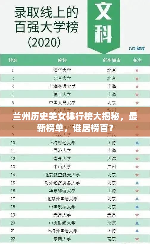 兰州,自古以来就是一片充满魅力的土地,不仅风景秀丽,更是人文荟萃,在这座美丽的城市中,历史美女们犹如璀璨的明珠,为兰州的历史文化增添了独特的魅力,本文将为您呈现兰州历史美女排行榜最新,带您领略这些美丽女子的风采。