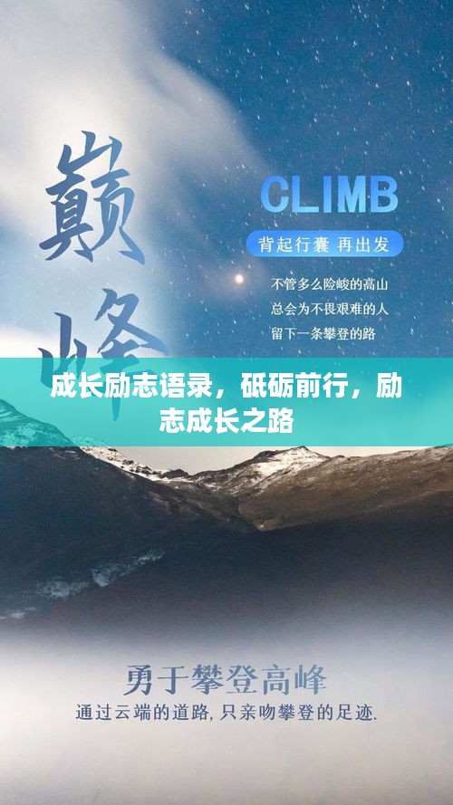 成长路上,我们都需要励志语录来鼓舞自己前行,面对人生的种种挑战和困难,励志语录能够激发我们的潜能,让我们更加坚定地迈向成功,以下是一些关于成长的励志语录,希望能为大家带来正能量和启示。