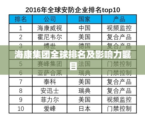 随着全球化步伐的加快,中国企业逐渐走向世界,参与全球竞争,海康集团作为中国的领军企业之一,其在全球的影响力日益扩大,本文将探讨海康集团的世界排名及其在全球舞台上的影响力。