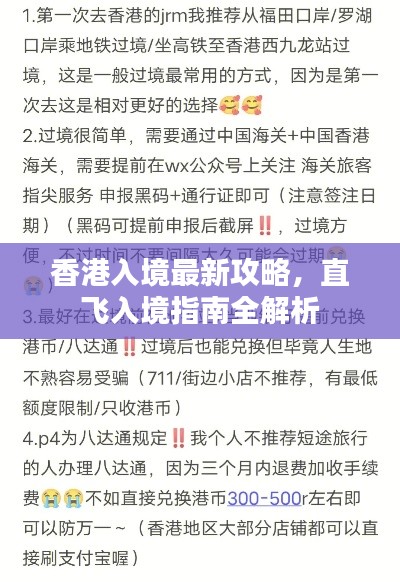 随着全球旅行的日益普及和便捷,香港作为亚洲重要的交通枢纽之一,吸引了众多旅客前来观光旅游或商务出行,本文将为您提供一份最新的香港直飞入境攻略,帮助您顺利完成入境手续,享受美好的旅程。