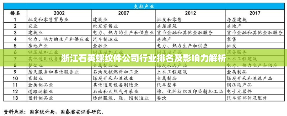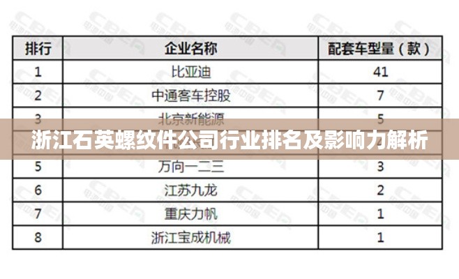 在中国经济蓬勃发展的时代背景下,浙江石英螺纹件行业逐渐崭露头角,本文将深入探讨浙江地区石英螺纹件公司的排名及其行业影响力,为广大读者揭示这一领域的现状和未来趋势。