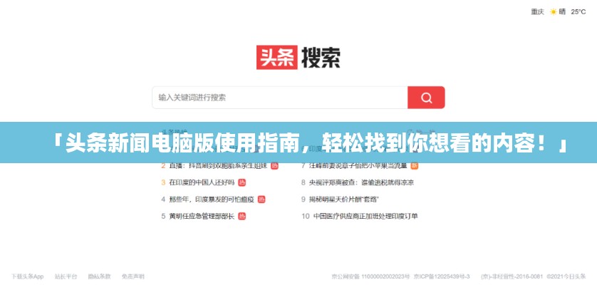 通过搜索引擎输入“头条新闻电脑版”关键词,即可找到相关网页,在搜索结果中,可以看到头条新闻官网的电脑版入口,点击进入即可。