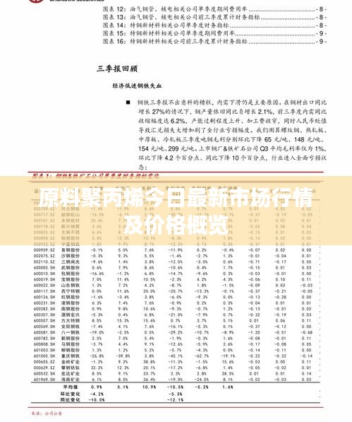 随着全球经济的复苏和制造业的繁荣发展,原料聚丙烯(PP)的需求日益旺盛,本文将对原料聚丙烯今日的最新价格进行详细介绍,帮助读者了解市场动态,做出明智的决策。