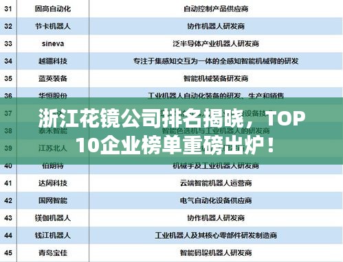随着人们生活水平的提高,花卉装饰已经成为生活中不可或缺的一部分,在浙江,花镜公司如雨后春笋般涌现,其中不乏一些在行业内颇具影响力的企业,本文将为您介绍浙江花镜公司排名前十名,带您了解这些在花卉行业中的佼佼者。