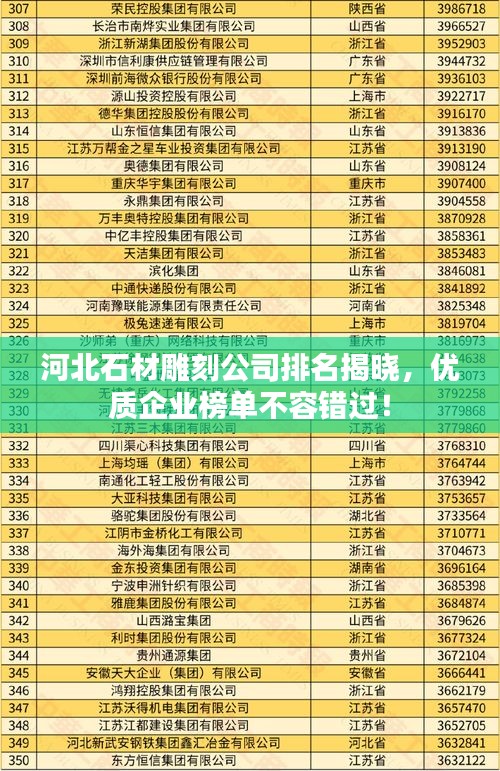 河北,这片古老而富饶的土地,以其丰富的石材资源和精湛的雕刻工艺而闻名于世,随着经济的发展,众多石材雕刻公司如雨后春笋般涌现,今天我们就来探讨一下河北石材雕刻公司的排名。