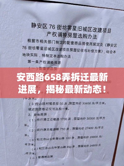 关于安西路658弄地区拆迁的消息引起了广泛关注,随着城市建设的不断推进,安西路658弄地区的改造计划已列入当地政府的议程,本文将对这一地区的拆迁最新消息进行详细介绍。