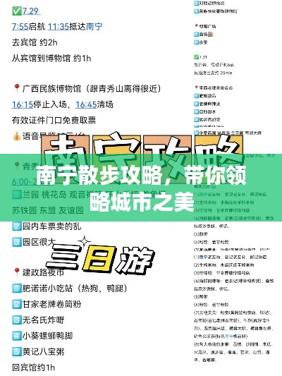 南宁散步旅游攻略就为您介绍到这里,在南宁散步,不仅可以欣赏到美丽的自然风光,感受到浓厚的文化氛围,还可以品尝到地道的美食,希望这份攻略能够帮助您更好地了解南宁,享受一次愉快的散步之旅,在您的散步之旅中,还要注意安全、防晒、防蚊等措施,保护好自己,尽情享受南宁的美丽与魅力。