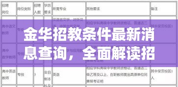 随着教育事业的不断发展,金华市的教师招聘条件也日新月异,本文将为您详细介绍金华市最新的招教条件及相关信息,帮助有意向在金华从事教育工作的朋友们更好地了解招聘动态。