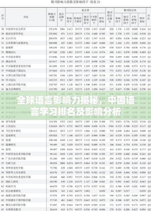 在全球化的今天,语言的学习与掌握对于每个人来说都显得尤为重要,中国,作为一个多元文化的国家,对外语的学习尤为重视,本文将探讨世界语在中国的学习排名,以及其对中国的社会、经济、文化等方面产生的影响。