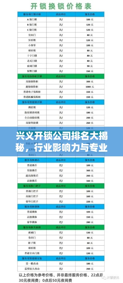 随着社会的快速发展,开锁服务已成为日常生活中不可或缺的一部分,在兴义市,众多开锁公司如雨后春笋般涌现,为消费者提供便捷、专业的服务,本文将探讨兴义市开锁公司的排名及其行业影响力,以帮助消费者更好地了解并选择优质的服务。