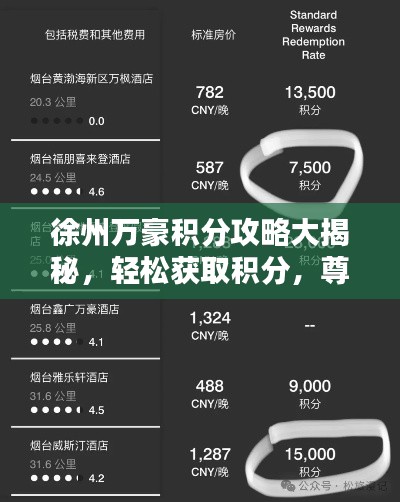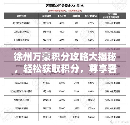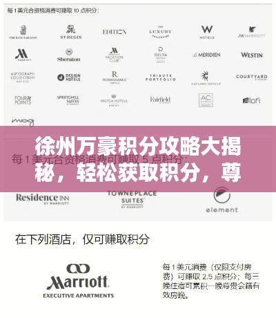 随着旅游业的繁荣发展,越来越多的人选择入住高端酒店,享受优质的服务和体验,万豪酒店作为全球知名的高端酒店品牌,吸引了众多消费者的关注,在徐州,万豪酒店也以其优质的服务和设施赢得了良好的口碑,本文将为大家分享一些关于徐州万豪积分攻略的最新信息,帮助大家在入住万豪酒店时获取更多积分,尊享万豪礼遇。