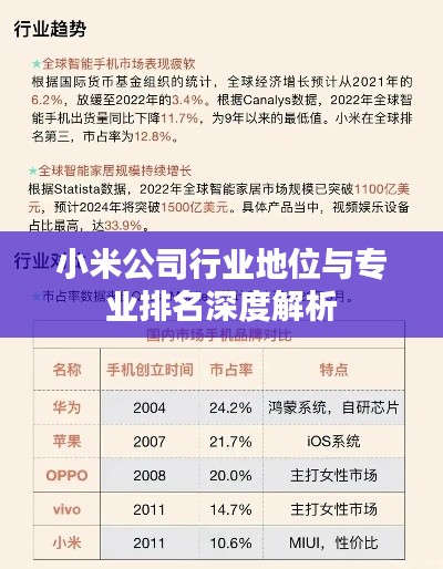 随着科技的飞速发展,众多科技公司在各个领域崭露头角,小米公司作为中国科技行业的重要一员,其在全球范围内的专业排名及其行业地位备受关注,本文将深入探讨小米公司的专业排名,以及其在国内乃至全球范围内的行业地位。