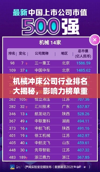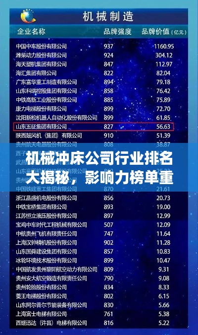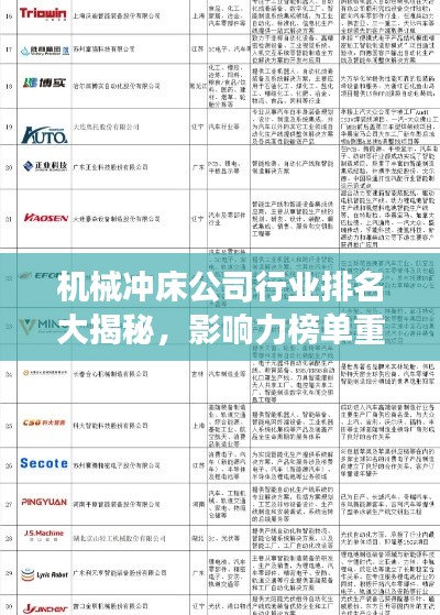 随着工业化的快速发展,机械冲床作为重要的金属加工设备,广泛应用于各个领域,本文将探讨机械冲床公司的排名及其行业影响力,帮助读者了解这一领域的领军企业。