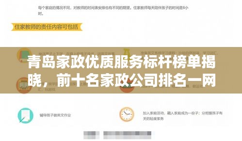 位于榜单首位的是青岛XX家政公司,该公司多年来一直专注于提供高品质的家政服务,他们拥有一支经验丰富、技能精湛的家政服务团队,提供包括保姆、月嫂、保洁等多项服务,该公司注重服务质量和信誉,深受客户好评。