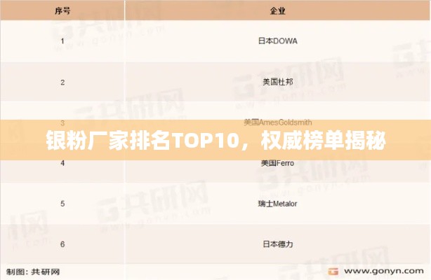 在现代工业与日常生活中,银粉的应用越来越广泛,其品质与性能也受到了广大用户的关注,本文将为您介绍银粉厂家排名前十名,这些厂家在银粉生产领域具有较高的知名度和市场份额。