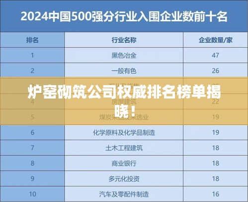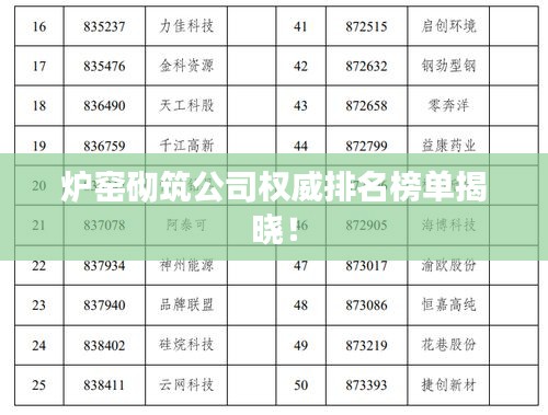 随着工业领域的不断发展,炉窑砌筑行业逐渐崭露头角,本文将介绍一些在炉窑砌筑领域表现突出的公司,并探讨它们在行业中的排名及背后的原因。