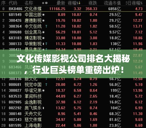 在当今文化产业迅猛发展的时代,文化传媒影视公司作为文化创新的重要载体,扮演着日益重要的角色,它们以强大的内容生产能力、广泛的传播渠道和深入的市场洞察,引领着影视行业的发展方向,本文将对当前文化传媒影视公司的排名榜进行介绍,带您了解这些行业巨头。