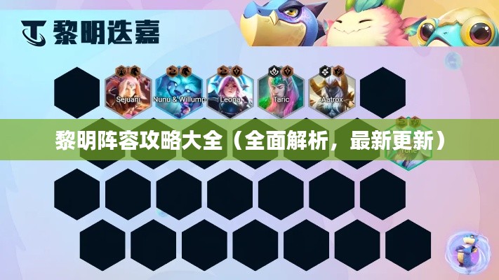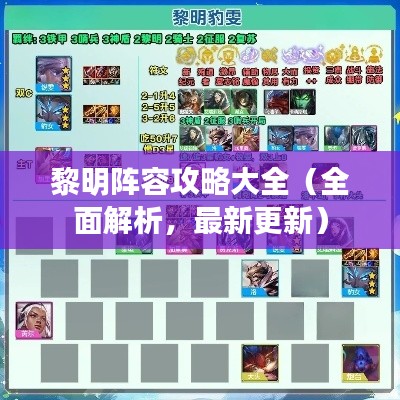 随着游戏版本的更新,黎明阵容也在不断地调整和优化,本文将为大家带来最新的黎明阵容攻略,帮助大家更好地了解各个英雄的定位、技能以及搭配方式,从而在游戏中取得更好的成绩。