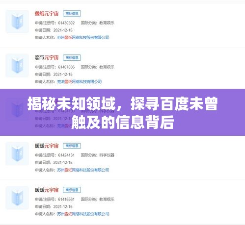 转载请注明来自武汉厨博士餐饮管理有限公司,本文标题:《揭秘未知领域,探寻百度未曾触及的信息背后》