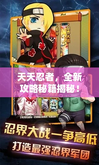 的不断更新和拓展,《天天忍者》这款游戏受到了众多玩家的喜爱,作为一款动作角色扮演游戏,它以其独特的画风、丰富的剧情和刺激的挑战吸引了大量玩家,本文将为大家带来天天忍者的最新攻略,帮助大家更好地掌握游戏技巧,提升游戏体验。