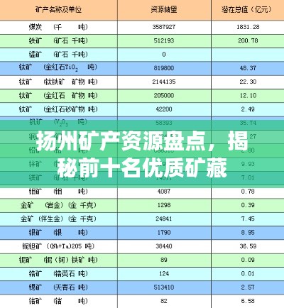 扬州,这座历史悠久的城市,不仅以其独特的文化韵味和美丽的自然风光吸引着人们的目光,其丰富的矿产资源也为其赢得了广泛的关注,本文将为您详细介绍扬州矿产排名前十名,带您走进扬州的矿产世界。