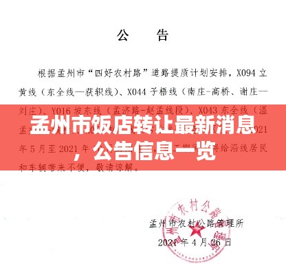 孟州市作为河南省的一个重要城市,经济发展迅速,人口众多,市场需求旺盛,本次公告涉及的饭店位于孟州市中心区域,地理位置优越,交通便利,周边商业氛围浓厚,由于饭店原经营者在经营过程中遇到一些困难,现决定对外转让该饭店。