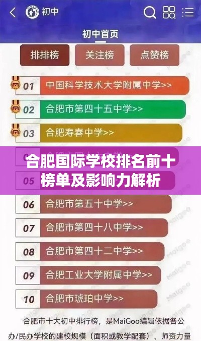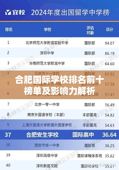 这些国际学校在课程设置、师资力量、教育资源等方面都有着较高的水平,它们的排名是基于多种因素的综合评估,包括学校的硬件设施、教学质量、学生的综合素质等,这些学校的影响力不仅仅局限于合肥地区,还在全国乃至全球范围内产生了广泛的影响。