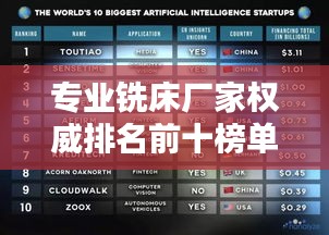 3、第三名至第十名:依次为YYY公司、ZZZ公司、AAA公司、BBB公司、CCC公司、DDD公司、EEE公司、FFF公司,这些公司在铣床领域也表现出色,拥有较强的研发实力、生产能力和服务质量。