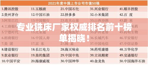 铣床作为现代制造业的核心设备之一,其性能和质量对于工业生产的效率有着至关重要的影响,随着科技的不断发展,铣床行业也在不断进步,市场竞争日益激烈,为了在市场中脱颖而出,各大铣床厂家纷纷加大技术研发和产品质量管理的力度,本文将介绍专业铣床厂家排名前十名,以期为广大用户提供参考。