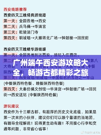 随着端午节的临近,许多人都开始计划自己的假期旅行,我们将为您呈现一份精彩的广州至西安旅游攻略,让您在端午节期间充分领略这两座城市的魅力。